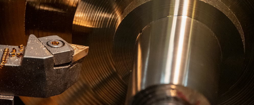 Material is spun by a lathe to allow blades to cut as it spins.